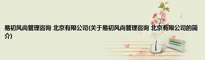本文关于易初风尚管理咨询 北京有限公司的简介就讲解完毕,希望对大家有所帮助。