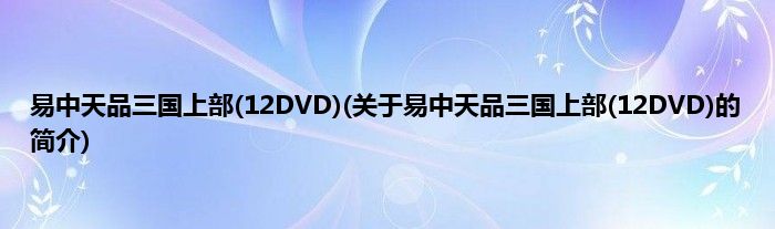 本文关于易中天品三国上部(12DVD)的简介就讲解完毕,希望对大家有所帮助。