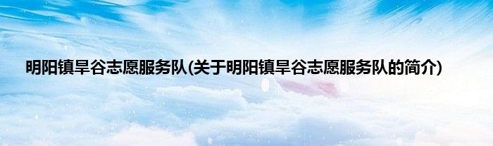 大家好,明阳镇旱谷志愿服务队,关于明阳镇旱谷志愿服务队的简介很多人还不知道,现在让我们一起来看看吧!