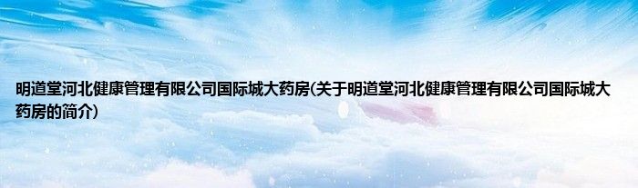 明道堂河北健康管理有限公司国际城大药房(关于明道堂河北健康管理有限公司国际城大药房的简介)