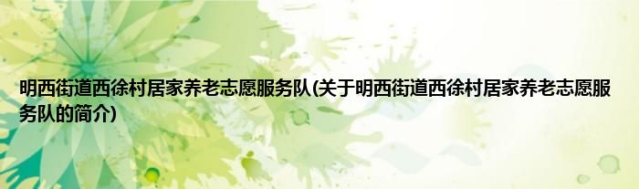 本文关于明西街道西徐村居家养老志愿服务队的简介就讲解完毕,希望对大家有所帮助。