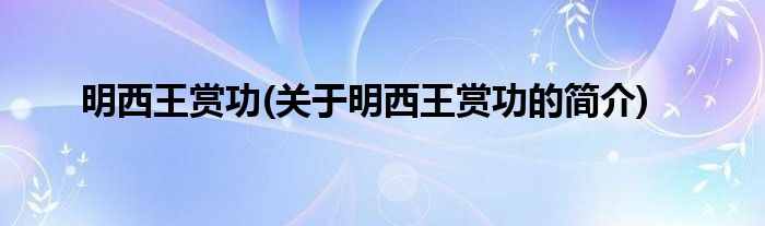 大家好,明西王赏功,关于明西王赏功的简介很多人还不知道,现在让我们一起来看看吧!