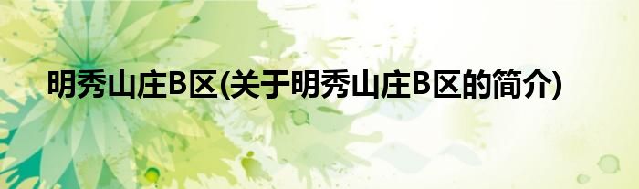 大家好,明秀山庄B区,关于明秀山庄B区的简介很多人还不知道,现在让我们一起来看看吧!
