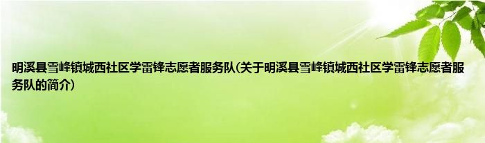 明溪县雪峰镇城西社区学雷锋志愿者服务队(关于明溪县雪峰镇城西社区学雷锋志愿者服务队的简介)