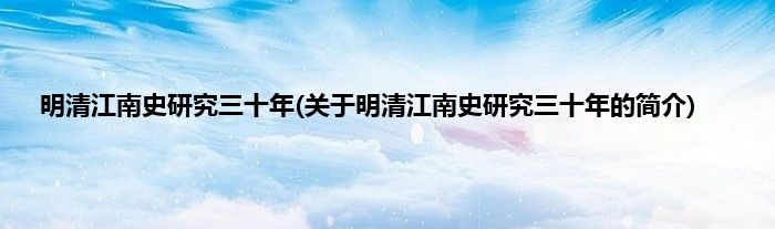 本文关于明清江南史研究三十年的简介就讲解完毕,希望对大家有所帮助。