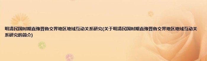本文关于明清民国时期直豫晋鲁交界地区地域互动关系研究的简介就讲解完毕,希望对大家有所帮助。