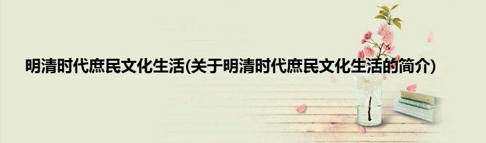 大家好,明清时代庶民文化生活,关于明清时代庶民文化生活的简介很多人还不知道,现在让我们一起来看看吧!