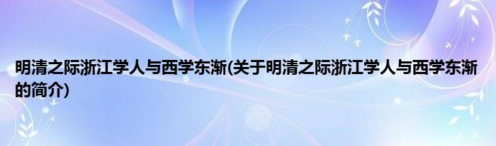 本文关于明清之际浙江学人与西学东渐的简介就讲解完毕,希望对大家有所帮助。