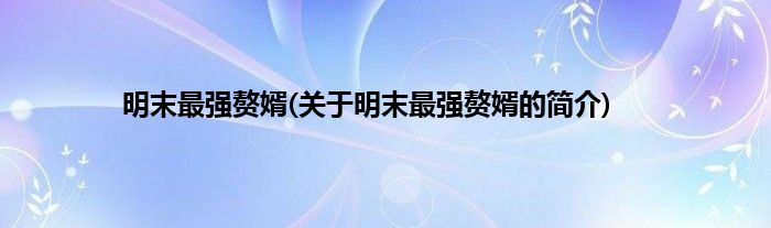 本文关于明末最强赘婿的简介就讲解完毕,希望对大家有所帮助。