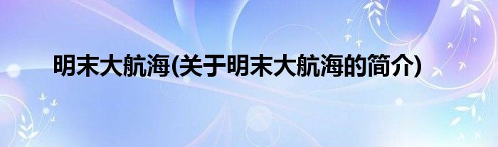 本文关于明末大航海的简介就讲解完毕,希望对大家有所帮助。