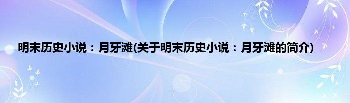 本文关于明末历史小说:月牙滩的简介就讲解完毕,希望对大家有所帮助。