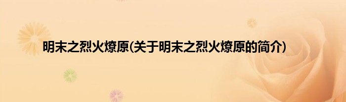 本文关于明末之烈火燎原的简介就讲解完毕,希望对大家有所帮助。