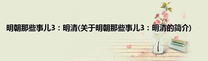 本文关于明朝那些事儿3:明清的简介就讲解完毕,希望对大家有所帮助。