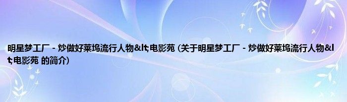 大家好,明星梦工厂-炒做好莱坞流行人物<电影苑。,关于明星梦工厂-炒做好莱坞流行人物<电影苑。的简介很多人还不知道,现在让我们一起来看看吧!