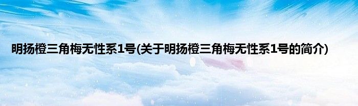 本文关于明扬橙三角梅无性系1号的简介就讲解完毕,希望对大家有所帮助。