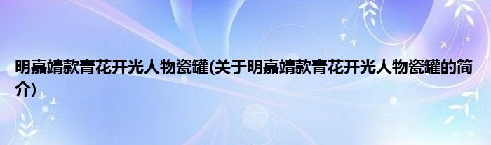 1、 明嘉靖款青花开光人物瓷罐是明嘉靖时期的瓷器。
