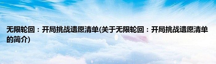 本文关于无限轮回:开局挑战遗愿清单的简介就讲解完毕,希望对大家有所帮助。