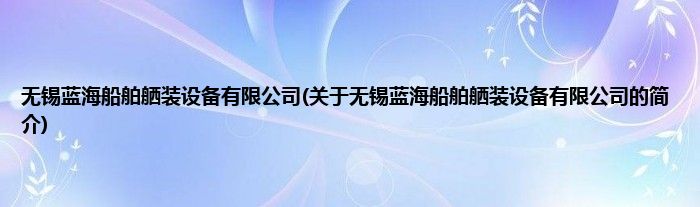 本文关于无锡蓝海船舶舾装设备有限公司的简介就讲解完毕,希望对大家有所帮助。