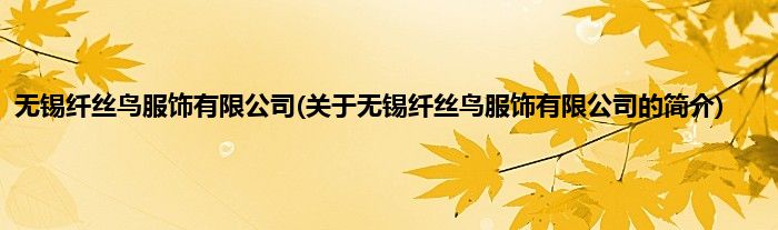 本文关于无锡纤丝鸟服饰有限公司的简介就讲解完毕,希望对大家有所帮助。