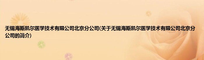 本文关于无锡海斯凯尔医学技术有限公司北京分公司的简介就讲解完毕,希望对大家有所帮助。