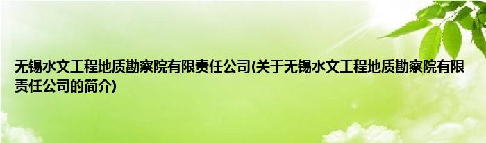 大家好,无锡水文工程地质勘察院有限责任公司,关于无锡水文工程地质勘察院有限责任公司的简介很多人还不知道,现在让我们一起来看看吧!