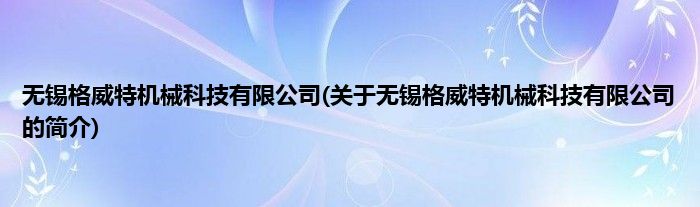 本文关于无锡格威特机械科技有限公司的简介就讲解完毕,希望对大家有所帮助。