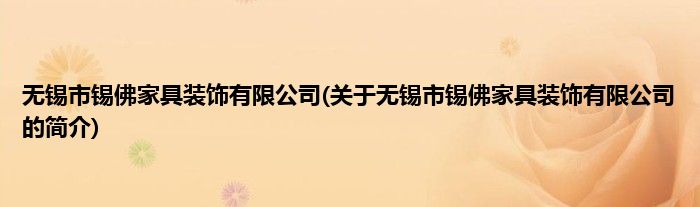 本文关于无锡市锡佛家具装饰有限公司的简介就讲解完毕,希望对大家有所帮助。