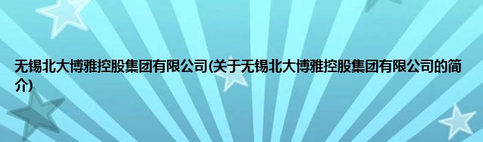 本文关于无锡北大博雅控股集团有限公司的简介就讲解完毕,希望对大家有所帮助。