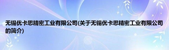 本文关于无锡优卡思精密工业有限公司的简介就讲解完毕,希望对大家有所帮助。