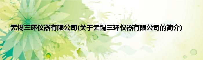 无锡三环仪器有限公司(关于无锡三环仪器有限公司的简介)