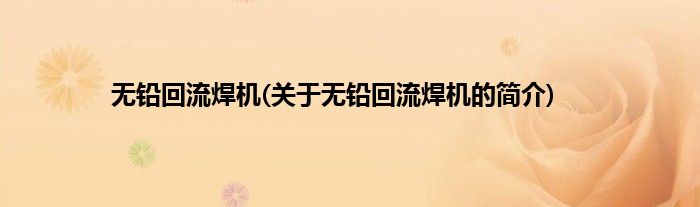 本文关于无铅回流焊机的简介就讲解完毕,希望对大家有所帮助。