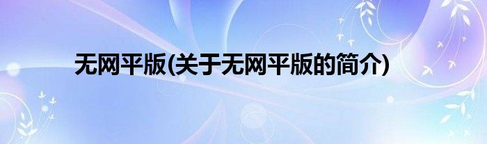 本文关于无网平版的简介就讲解完毕,希望对大家有所帮助。