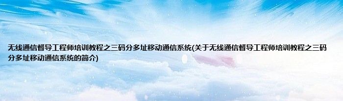 本文关于无线通信督导工程师培训教程之三码分多址移动通信系统的简介就讲解完毕,希望对大家有所帮助。