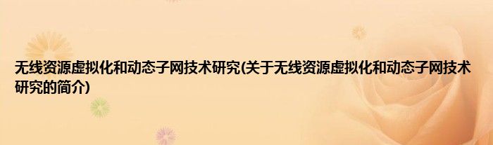 无线资源虚拟化和动态子网技术研究(关于无线资源虚拟化和动态子网技术研究的简介)