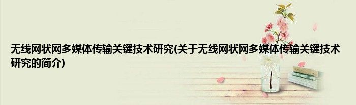 本文关于无线网状网多媒体传输关键技术研究的简介就讲解完毕,希望对大家有所帮助。