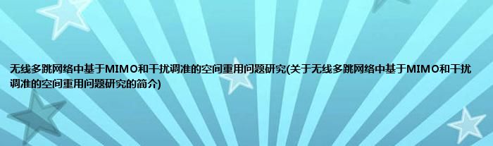 无线多跳网络中基于MIMO和干扰调准的空间重用问题研究(关于无线多跳网络中基于MIMO和干扰调准的空间重用问题研究的简介)