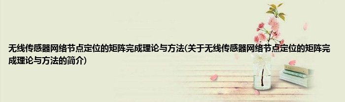 无线传感器网络节点定位的矩阵完成理论与方法(关于无线传感器网络节点定位的矩阵完成理论与方法的简介)