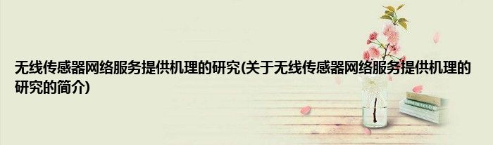 本文关于无线传感器网络服务提供机理的研究的简介就讲解完毕,希望对大家有所帮助。