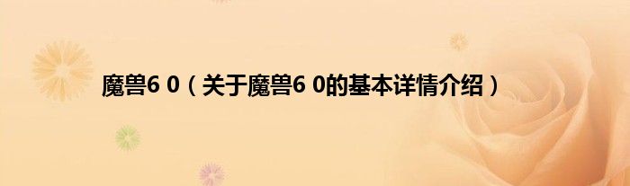 本文关于魔兽6 0的基本详情介绍就讲解完毕,希望对大家有所帮助。