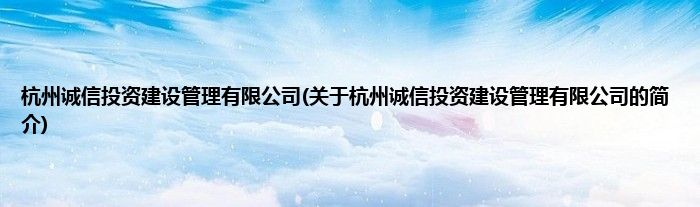 本文关于杭州诚信投资建设管理有限公司的简介就讲解完毕,希望对大家有所帮助。