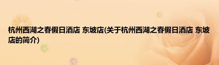 大家好,杭州西湖之春假日酒店 东坡店,关于杭州西湖之春假日酒店 东坡店的简介很多人还不知道,现在让我们一起来看看吧!