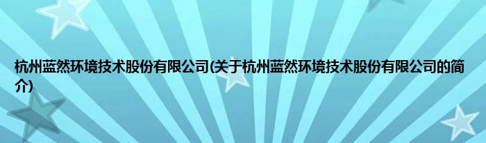 本文关于杭州蓝然环境技术股份有限公司的简介就讲解完毕,希望对大家有所帮助。