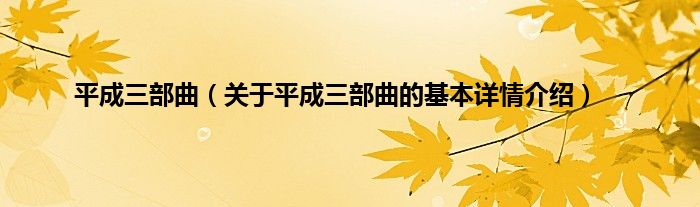 本文关于平成三部曲的基本详情介绍就讲解完毕,希望对大家有所帮助。