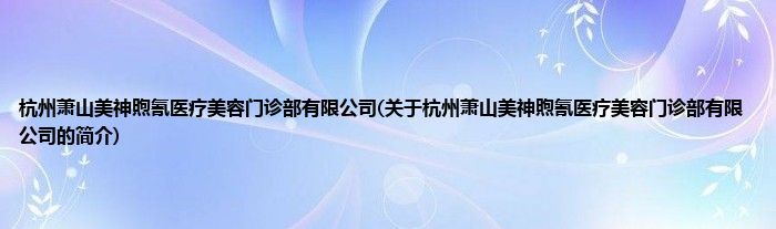 本文关于杭州萧山美神煦氰医疗美容门诊部有限公司的简介就讲解完毕,希望对大家有所帮助。