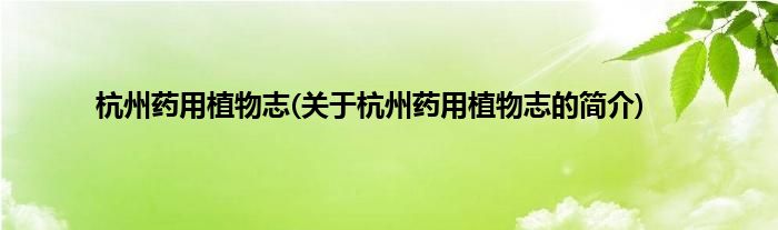 本文关于杭州药用植物志的简介就讲解完毕,希望对大家有所帮助。