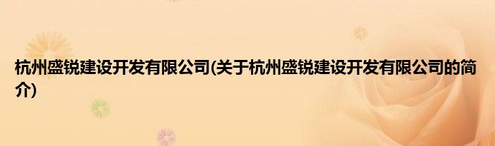 本文关于杭州盛锐建设开发有限公司的简介就讲解完毕,希望对大家有所帮助。