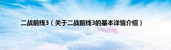 本文关于二战前线3的基本详情介绍就讲解完毕,希望对大家有所帮助。