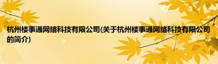 本文关于杭州楼事通网络科技有限公司的简介就讲解完毕,希望对大家有所帮助。