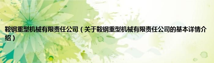 本文关于鞍钢重型机械有限责任公司的基本详情介绍就讲解完毕,希望对大家有所帮助。