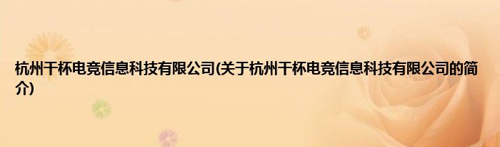 本文关于杭州干杯电竞信息科技有限公司的简介就讲解完毕,希望对大家有所帮助。